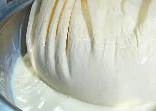 6.紗布浸濕鋪在豆腐模具內,避免豆腐粘在紗布上不好脫模→倒入豆花→模具上放重物稍微壓實10分鐘→完成