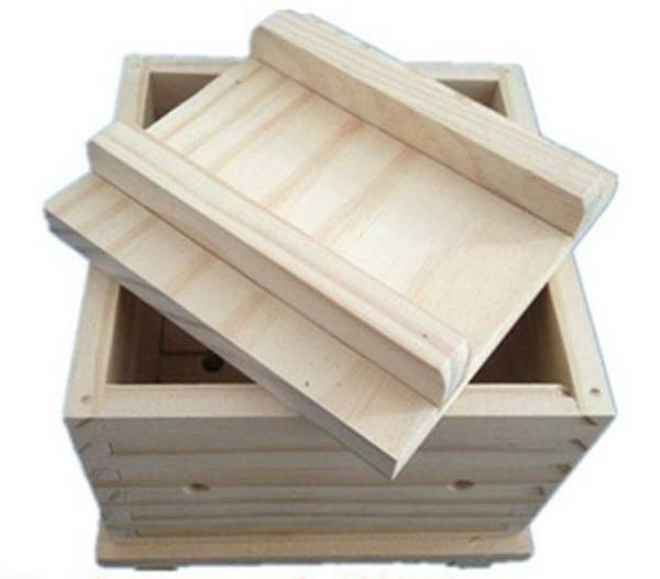 模具網路上很多款式,材質有塑膠木質,這種松木感覺比較有手感豆腐的feel,小家庭小型比較剛好,除了做豆腐,還能用來蒸蘿蔔糕、年糕