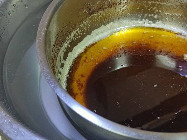 顏色已經呈現褐色,放在另一盆冷水中降溫