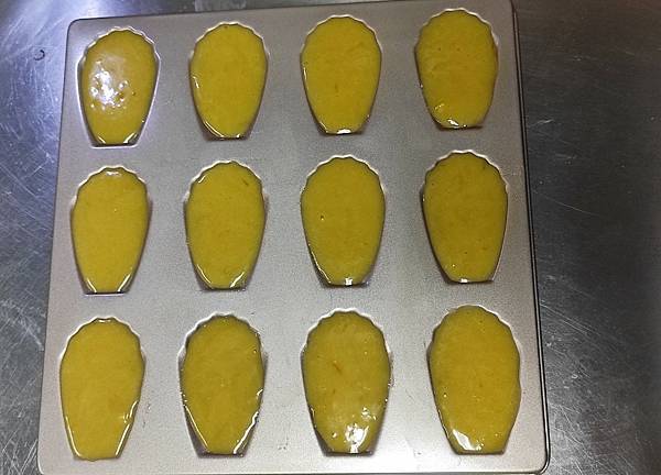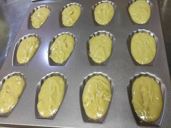 這樣滿的程度,烤出來比較澎,過多的話就會溢出貝殼型狀之外