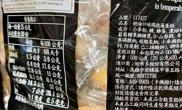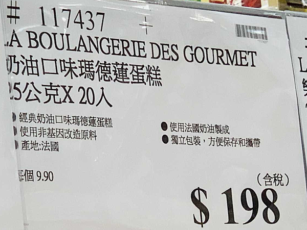 COSTCO瑪德蓮有2種,一種盒裝20入,是現做所以無添加,一種袋裝,袋裝裡面是單包裝,盒裝這款被神級好市多社團追捧出來的神級美味