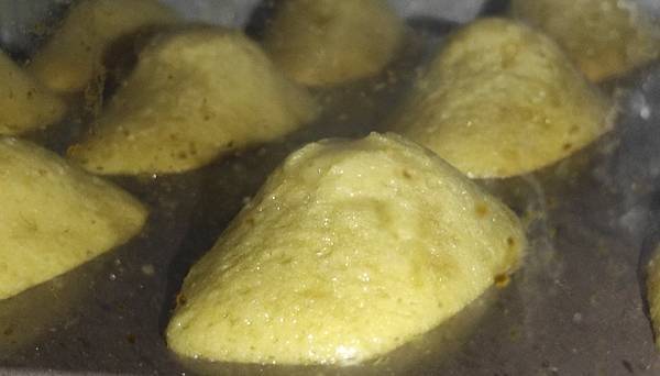 若麵糊放得不夠,就會像這樣失敗,不夠圓胖