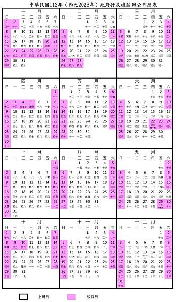 2023年(民國112年)行事曆!