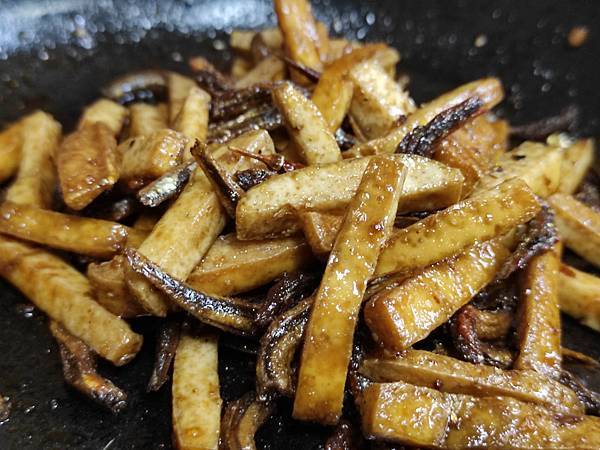 婆婆口述小魚豆干做法: