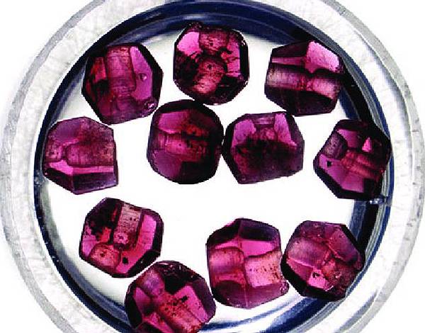 玫紅色: 玫紅色石榴石等級也相對比較高,在強烈白光照射下,看起來會有點偏桃紅色。