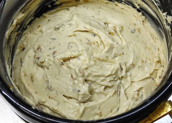 6加入核桃碎,拌勻,讓每個核桃能沾滿乳酪糊。
