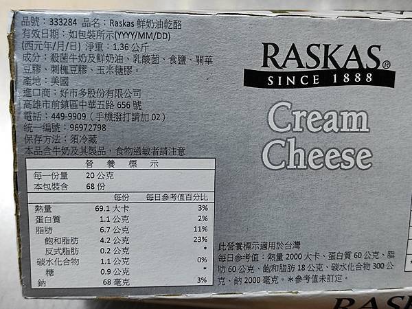 好市多paskas奶油乳酪1360g / 399。