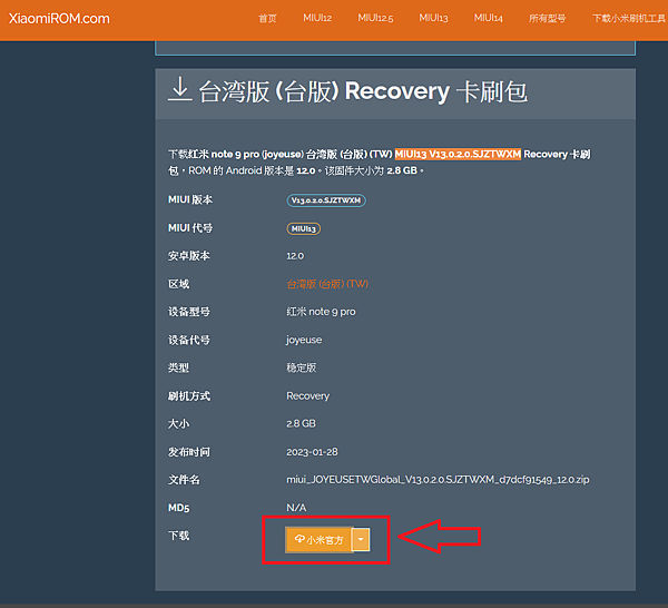 紅米NOTE 9 PRO卡刷 MIUI13 V13.0.2.0.SJZTWXM ,下載和安裝方式