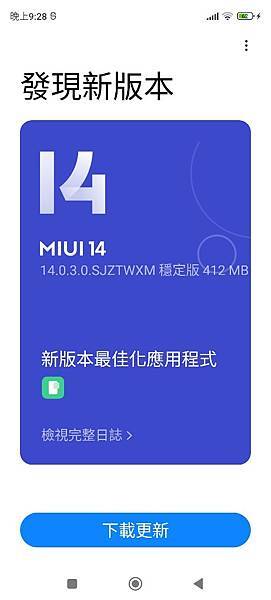 此時就會出現"發現新版本" MIUI 14,就可以使用手機直接下載更新