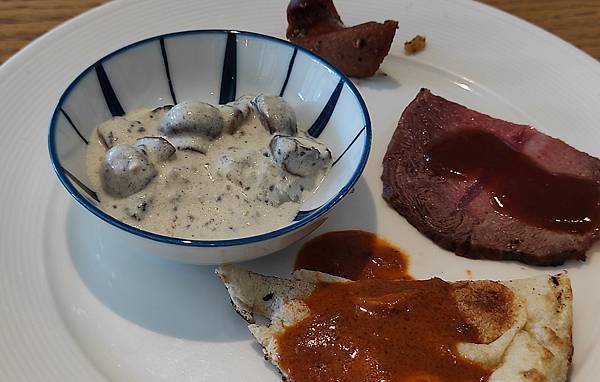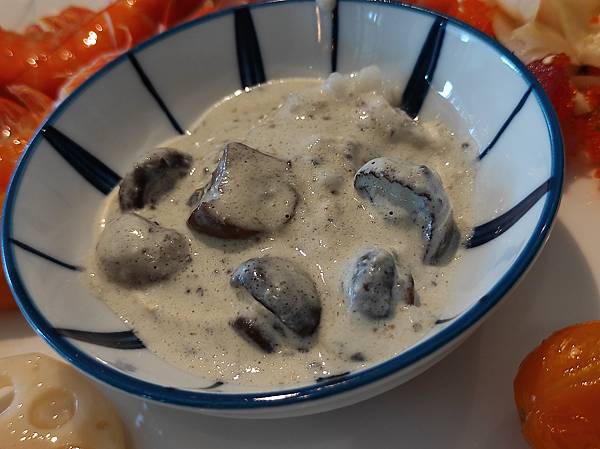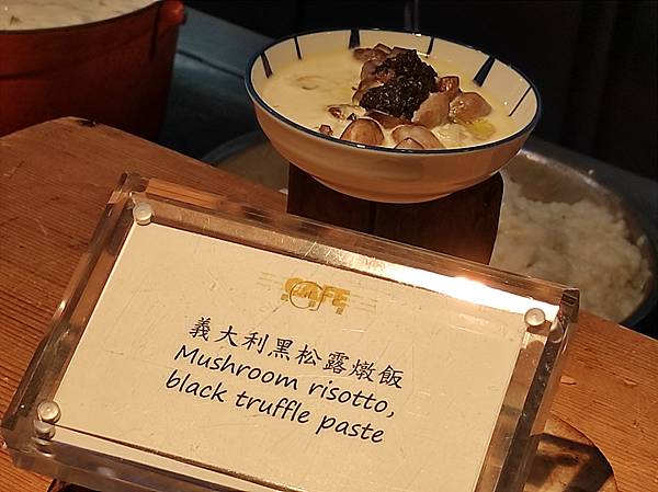 我拿的黑松露義大利燉飯減量版,跟廚師另外要的1口小分量,小胃陪孩子吃下午茶,就是品嘗多樣性,美味的食物,吃上1口就很滿足;後幾次再來發現飯都盛1口飯量,果然食客都不愛飯,只喜歡松露醬。