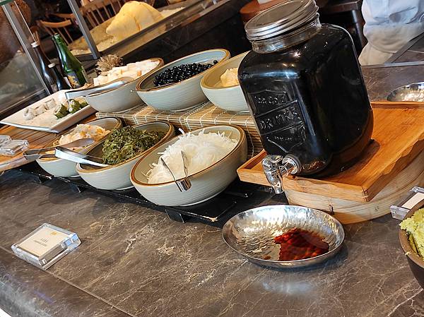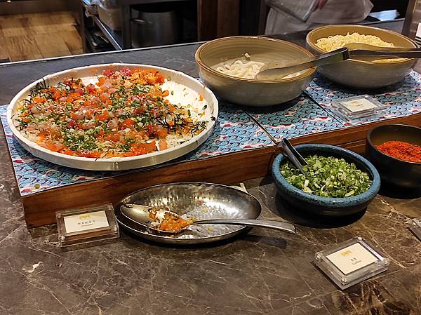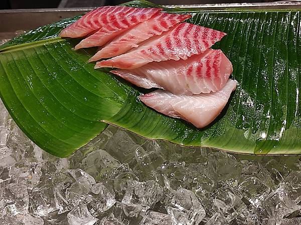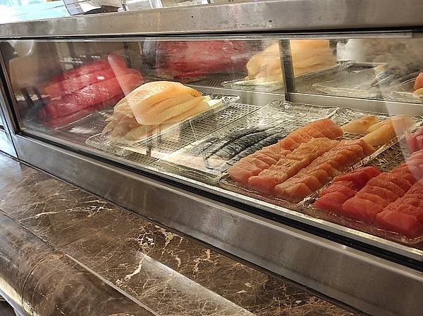這區全部是海鮮類,凱菲屋平日下午茶有生魚片,不懂為什麼很多人第一件事就是衝生魚片,使得隊伍排的超長,其實不要急著來排隊,可以先拿牛排類或其他好吃的熟食,過20分鐘再過來,完全不用排隊, 生魚片有鮭魚、鮪魚、鯖魚、旗魚,現點師傅現切。