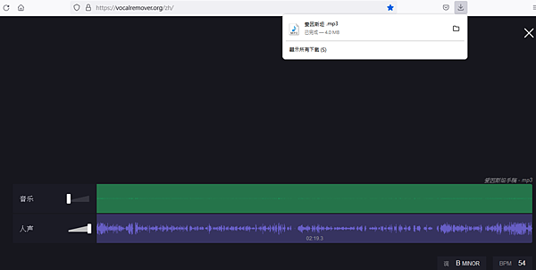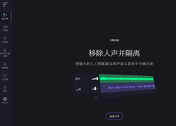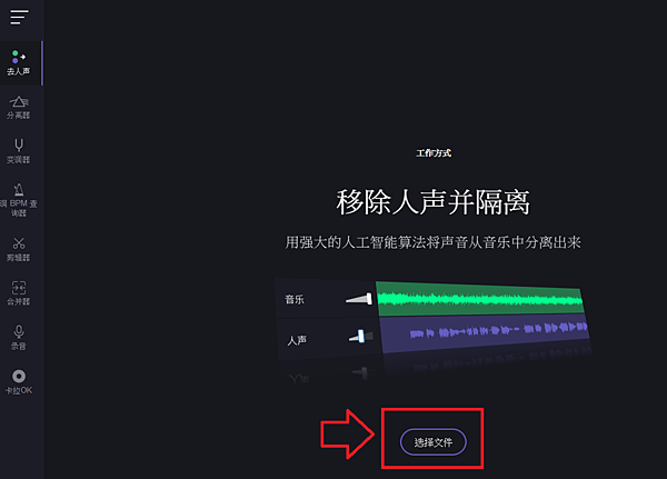 點網址打開 Vocal Remover and Isolation 頁面 https://vocalremover.org/zh/ >選擇文件