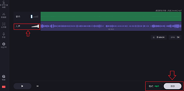 我要人聲,所以選人聲>選好後,網頁下方會出現>保存