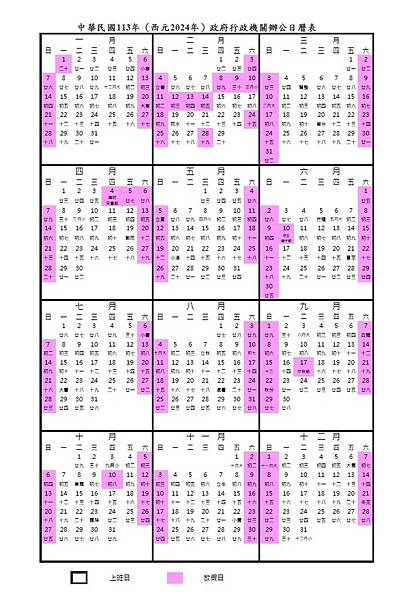 附件下載 113年辦公日曆表.xls .pdf .ods