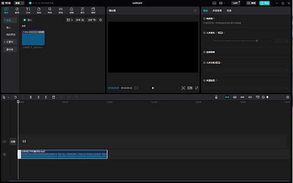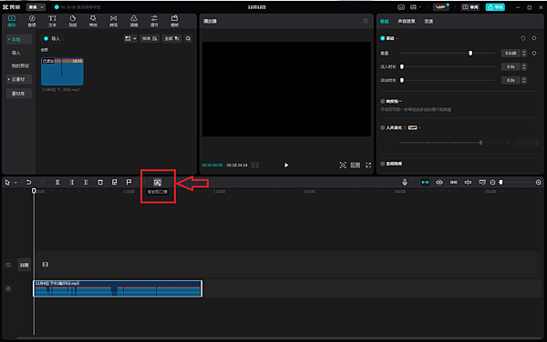 到這個步驟已經正式進入剪映的編輯畫面,接下來就分享如何用剪映來自動生成訪談逐字稿