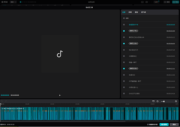 完成辨識後,會發現音軌上方出現了字幕檔,字幕已經出現在音軌之上,看似密密麻麻的線條