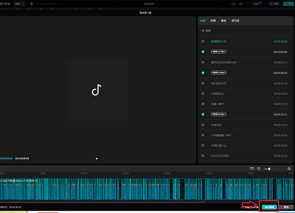 這個階段會把音檔中所有出現過的贅詞列出,如果要刪除,就在這個步驟可一次刪除。