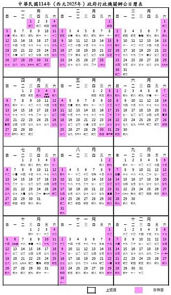 下載: 114年辦公日曆表.xls PDF下載 .ods