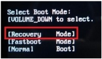 在手機完全關機狀態下,同時按“電源鍵”+“音量下鍵”,直到出現以下畫面,選擇“Recovery Mode”並進入。(在Recovery模式下,音量下鍵(小聲)代表“選擇”,音量上(大聲)鍵代表“確認”)