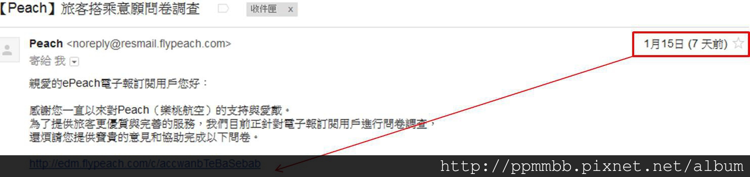 2016.01.15收到樂桃航空電子報會員問券調查表,本人把自己這篇文章網址附上去,讓樂桃航空自己看看多讓人失望,有麼多破壞日系長久累積給人優良服務的美好感覺。