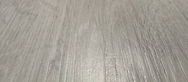 SPC木紋壓的深乍看是很美,觸感也很好,但是用久了非常容易在表面凹凸紋上中卡垢,這就要純手工用抹布將凹紋內污垢去除,尤其用在油煙和容易滴到水的廚房,所以選擇SPC時,凹凸紋深度要特別注意,壓紋過深的最好別選,好的SPC壓紋仿真會做的和真木紋接近,不會壓到像沐石這麼深。
