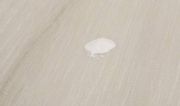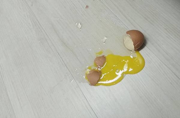 我這鋪了SPC後的廚房地面,實在多災多難,雞蛋都能從流理台上滾落爆開,這是住在這裡20年,第一次發生的狀況,卡扣縫隙上滿是蛋液,還好這區卡扣是密合的,所以不用擔心,立刻清理就不會滲入接縫中,把蛋全部清乾淨,再用清水擦拭,因為生蛋很腥,要再用溫和的稀釋清潔液擦乾淨,再噴上美樂家殺菌液,最後噴上光觸媒除臭就完全沒有味道和殘留,代表SPC 滿好清潔的。