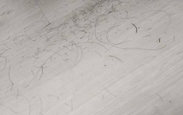 我家阿拿達的髮型都是由我操刀,每次剪髮最後細修時地上總會滿是細碎毛髮,以前老舊磁磚縫隙大,毛削挺容易卡在縫裡面,好難徹底清乾淨,現在鋪了SPC,接縫細微很容用吸塵器吸的乾淨