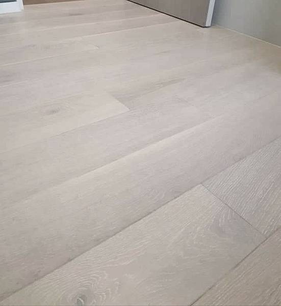回歸正題,到目前為止感覺這款淺色spc地板滿容易保持乾淨,深色地板大家都覺得優點是耐髒,個人感覺耐髒是不易看見髒處,但髒污還是在那裡只是不易看見而不是不髒,淺色滿適合我人口簡單的小家庭, 當初各家超耐磨地板和石塑地板廠商都說微斜坡廚房不能鋪石塑地板,讓我有點擔心真會有縫隙或卡扣無法平整而產生什麼使用上的問題,或許因為廚房鋪設時,每片地板底下都有上少許矽利康防止移動,雖然交接處些微小落差,使得擦地時要特別清一下之外,其他也沒什麼困擾的問題。