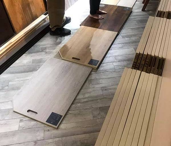門市可以踩踏感覺一下地板觸感,但是只有大樣板,沒有整片全板材,想看整片舖完的感覺,老闆會提供他家舖完的案例而不是原廠廣宣圖片